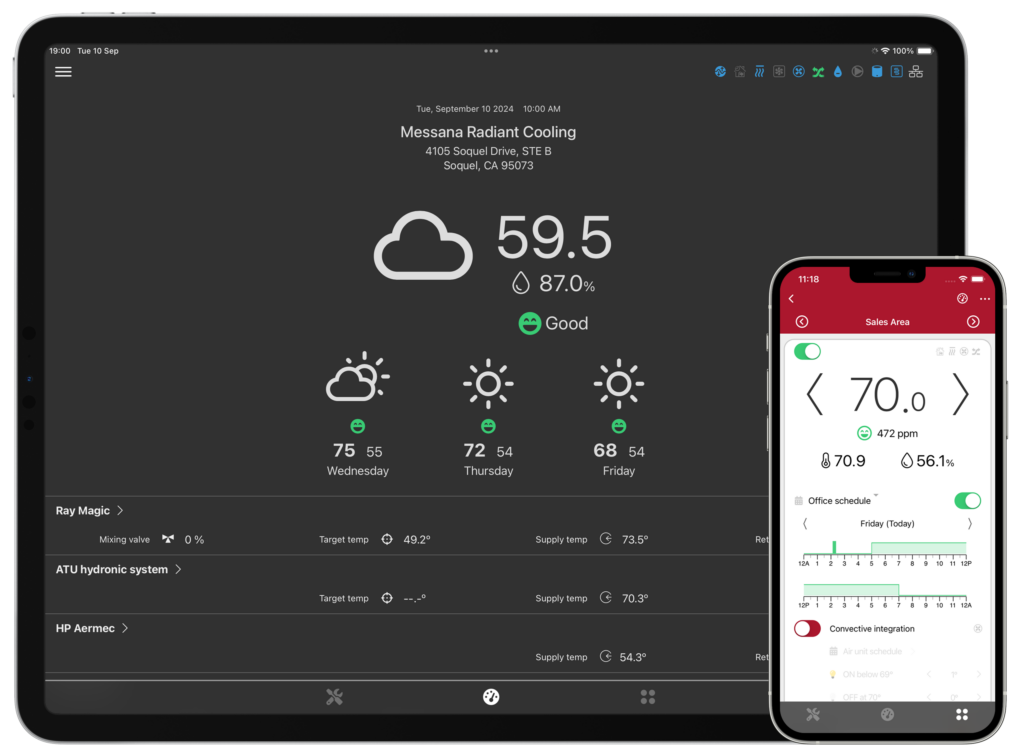 Messana Controls can monitor and manage heating/cooling/air treatment via radiant surfaces, hydronic fan coils, ERV/HRV units, and VRF/VRV systems.